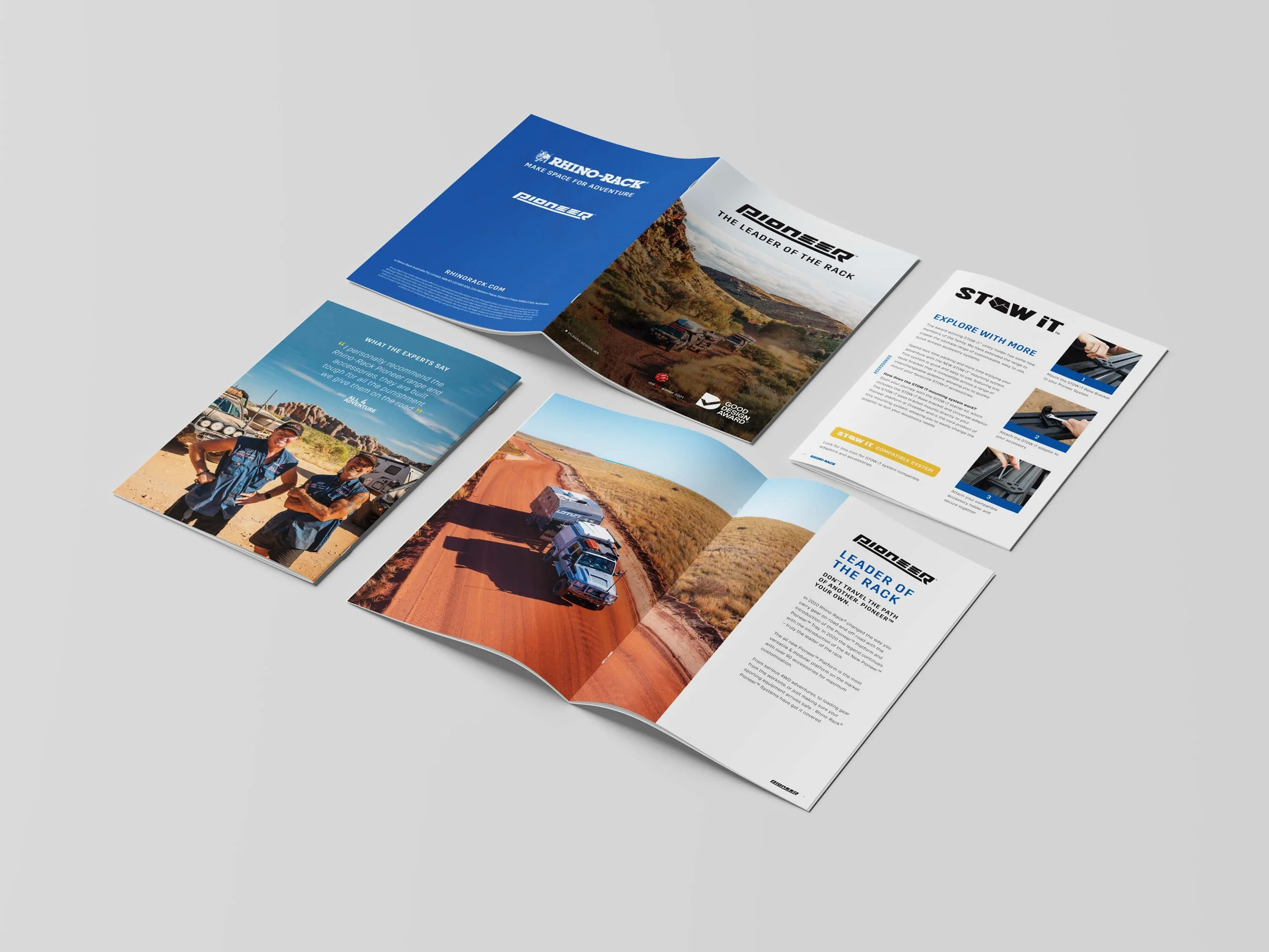 Focusing on the Pioneer™ range, we developed a brochure to accompany the release of the Rhino Rack Kiosk. The brochure followed the brand language established in the catalogue, to call out new products and assist customers in finding direct products designed for their specific vehicle.
